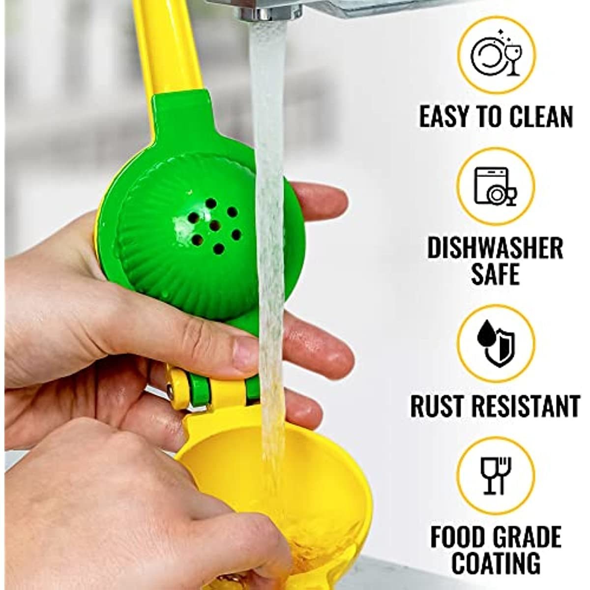 CLEANS IN SECONDS: After adding a tangy flavor to your recipe; simply toss the citrus juicer in the dishwasher for a quick clean up. Our juice press can also be effortlessly cleaned by running it under water.