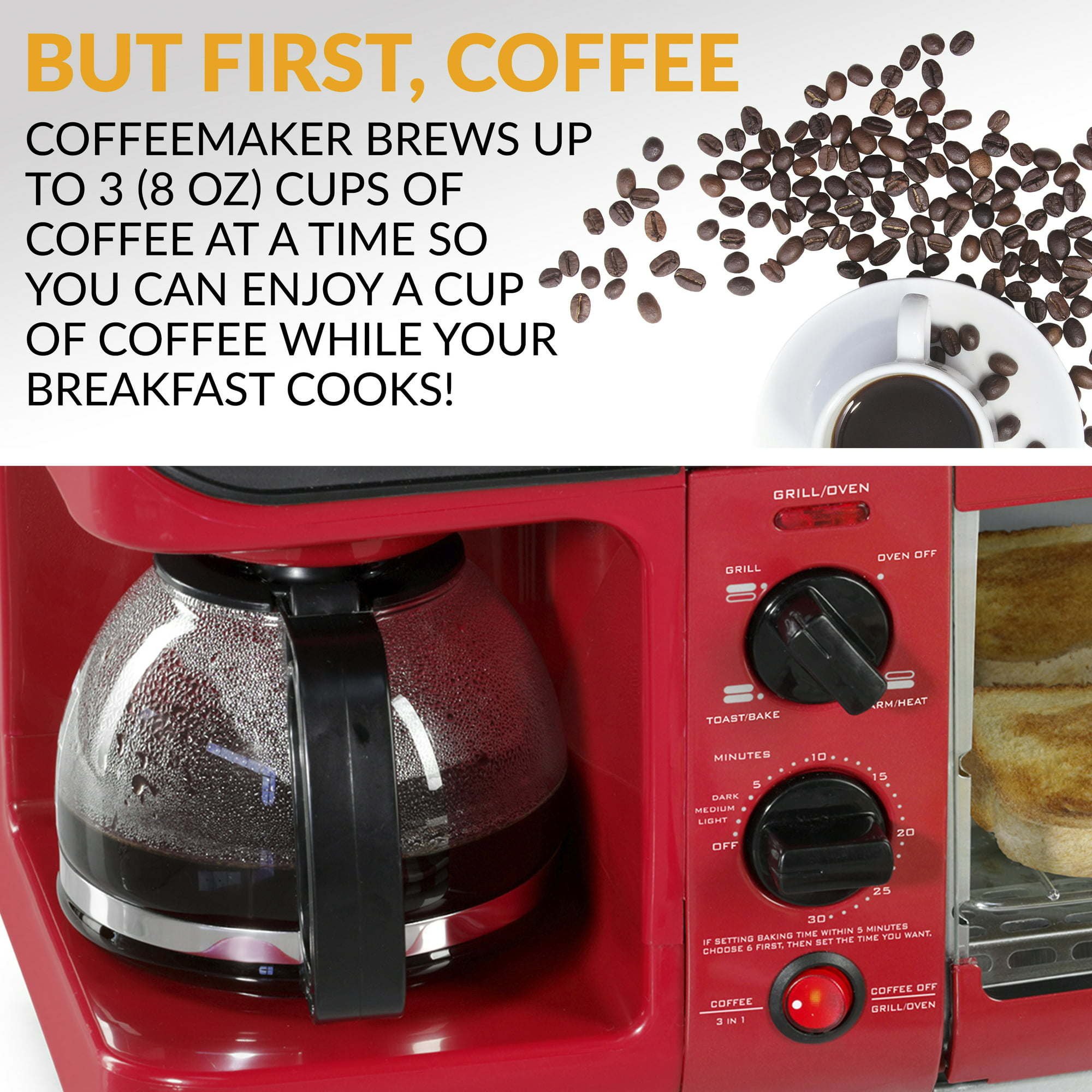 Home > Nostalgia BST3RR Retro 3-in-1 Family Size Electric Breakfast Station, Coffeemaker, Griddle, Toaster Oven - Retro Red