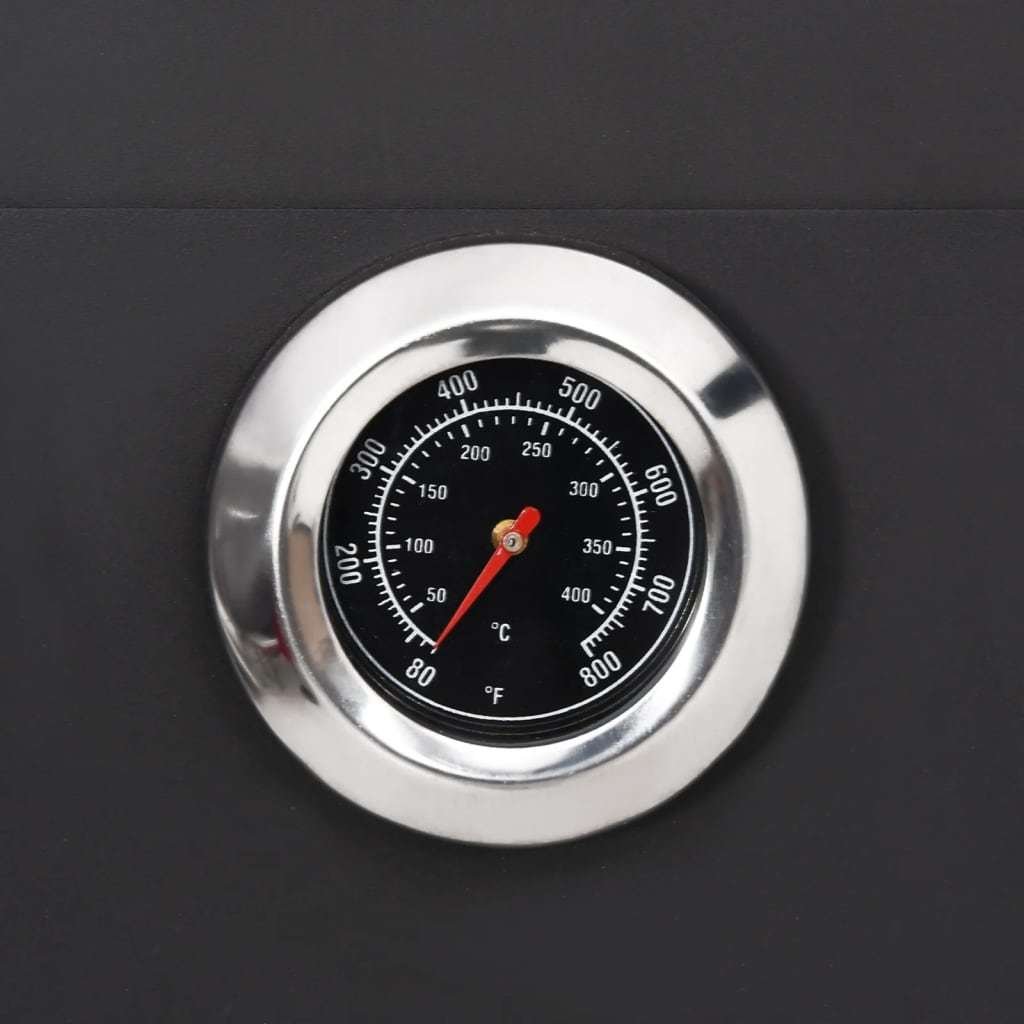 This standalone oven is suitable for all types of charcoal. The fire tray is removable, allowing for quick and easy cleaning. The top compartment is used for baking and its base is made of two refractory ('fireclay') bricks, which distribute the heat evenly within the oven and can withstand temperatures of up to 1300℃. The bricks also ensure that your food will not be soiled by flying ash or dust from the fire. The two shelves provided underneath the oven are practical to store oven gloves or other supplies. This oven also comes with a built-in thermometer.Color: BlackMaterial: SteelOven dimensions: 21.3" x 23.2" x 79.9" (W x D x H)Baking compartment dimensions: 15.6" x 16.7" x 8.7" (W x D x H)Built-in thermometer: IncludedBaking base: 2 x Fireclay brickFire/ash tray: RemovableRemovable fire tray: YesCalifornia Proposition 65