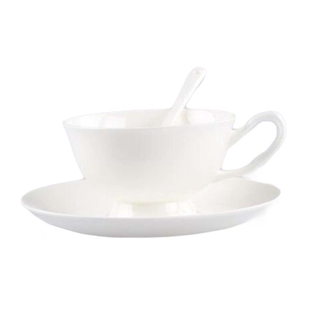 Porcelain Teacups Coffee Cup Set Cup Saucer Spoon Ceramic Mugs White Mug 6.8OZ