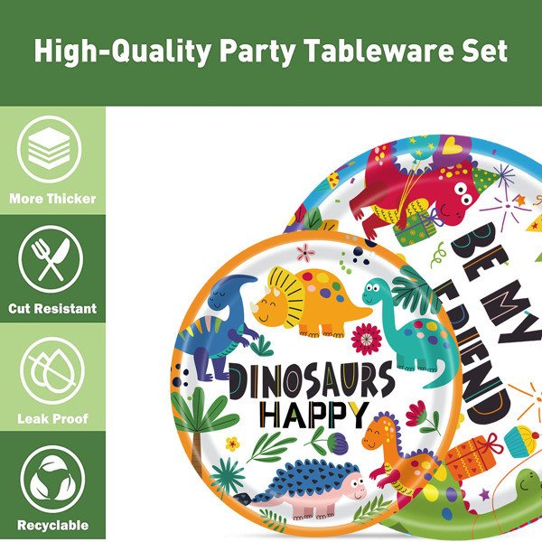 Dinosaur pattern dinnerware set made of high-end; durable and heavyweight paper<p> </P>