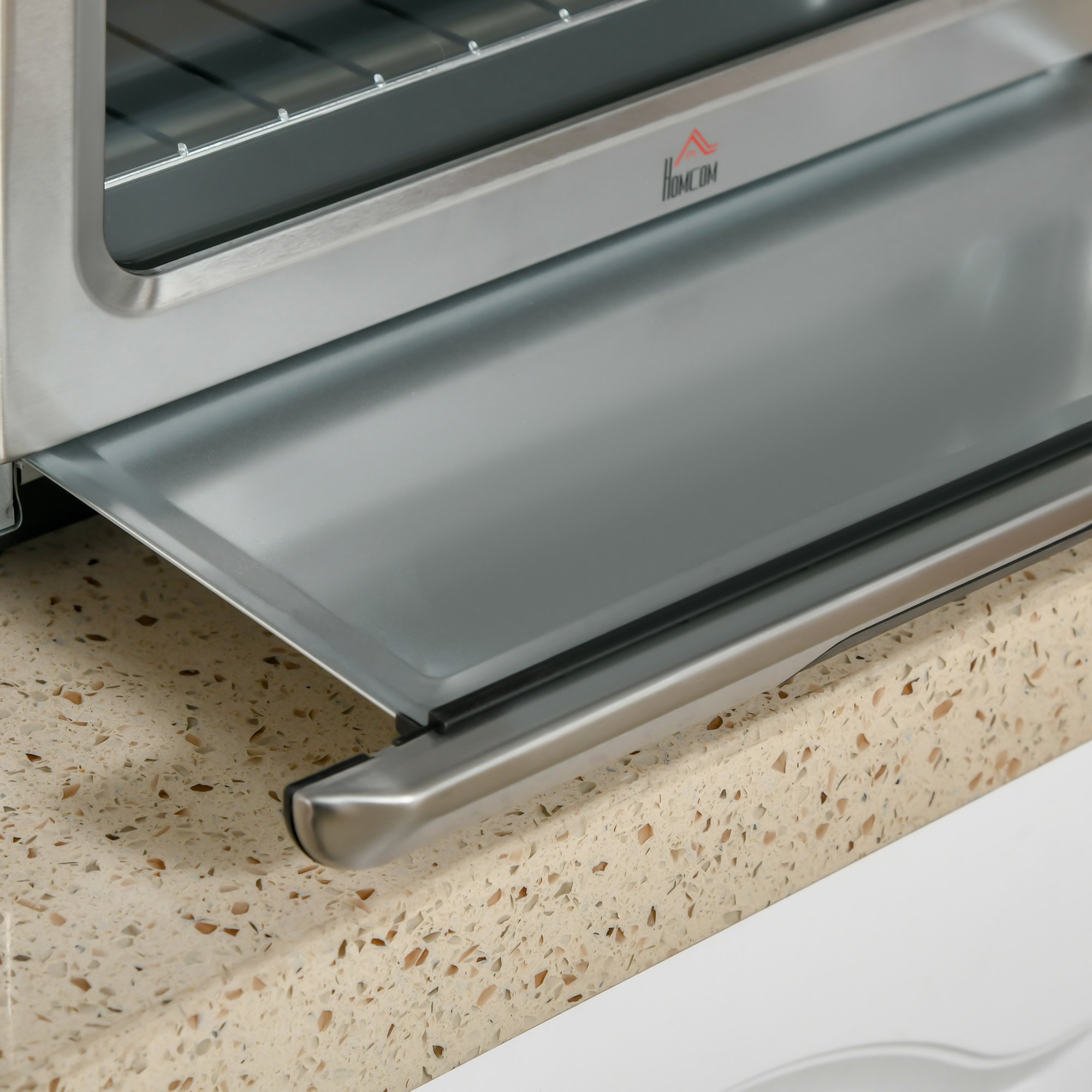 PLENTY OF ROOM TO COOK: This air fryer toaster has a 21 Qt capacity with two racks that allow four slices of bread or 9" pizza and won't take up much space on your counter.