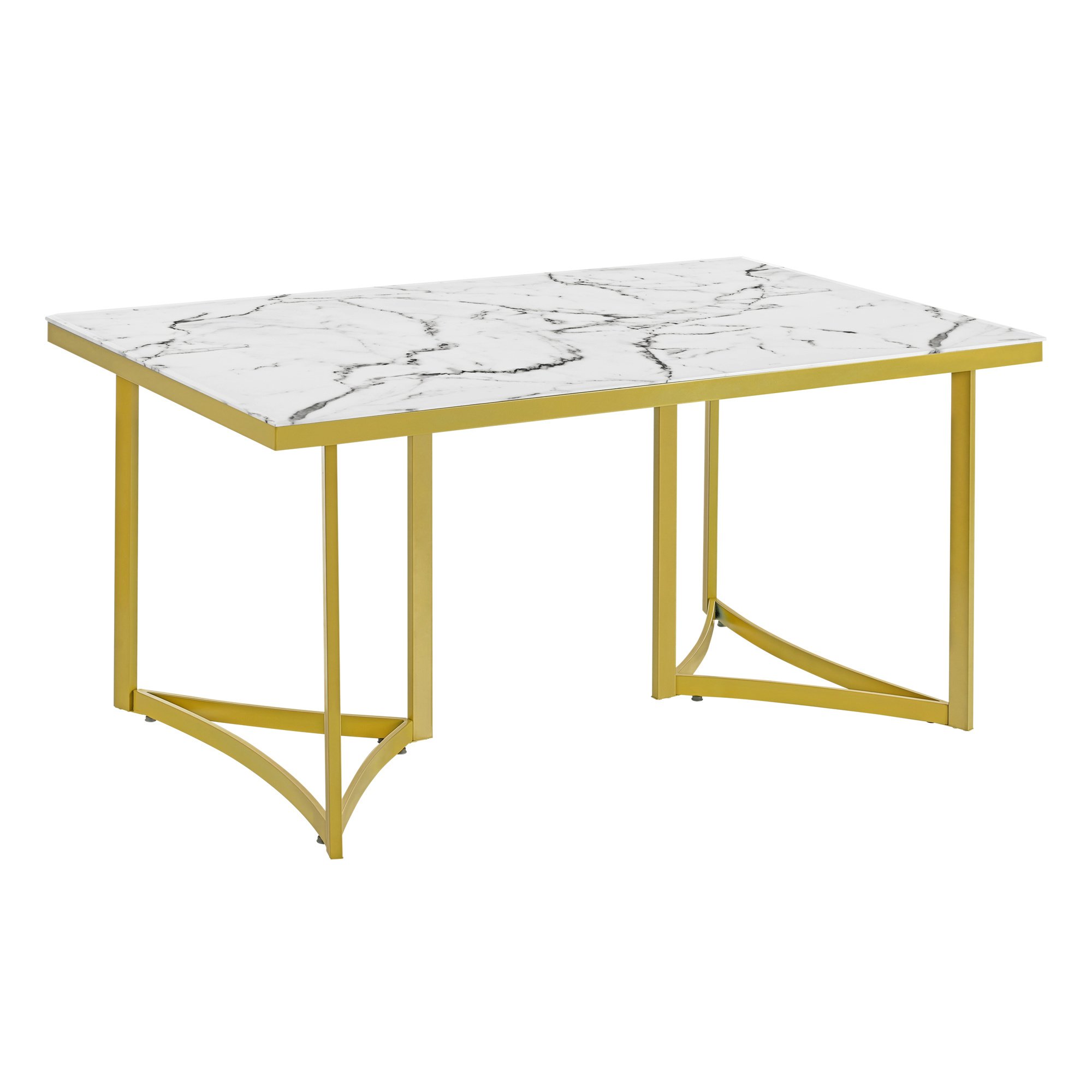 Streamlined Rectangular Table: Simple and fashionable, it is a classic rectangular dining table accommodating up to 6 people. The tabletop is made of MDF veneered with the marble sticker in UV finish, natural and clear, giving a smooth touch. In addition, the table is equipped with six metal steel pipe legs. Every three table legs correspond to a base composed of three arc-shaped steel pipes, which undoubtedly make the table stable and durable.