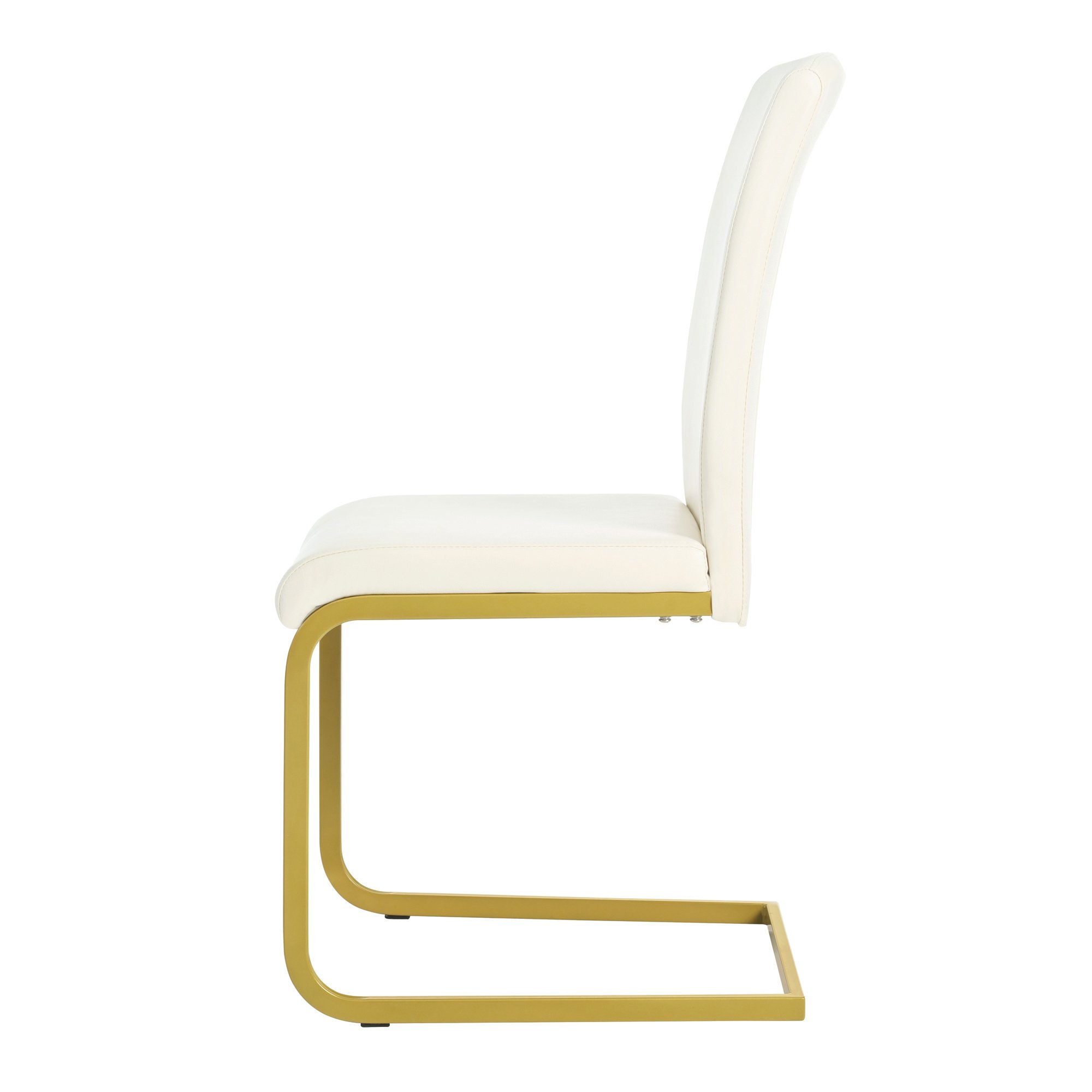 Light-Luxury Chair Set: With a seat and back in a single hue, this dining chair is suitable for various home decors, because the sleek gold C-shaped base of this chair adds regular and luxurious flavor. Luxuriously chair seats feature thick cushions upholstered in PU leather for a contemporary monochromatic look. The unique design of the chair leg allows you to gently shake your back, just like the feeling of a rocking chair.