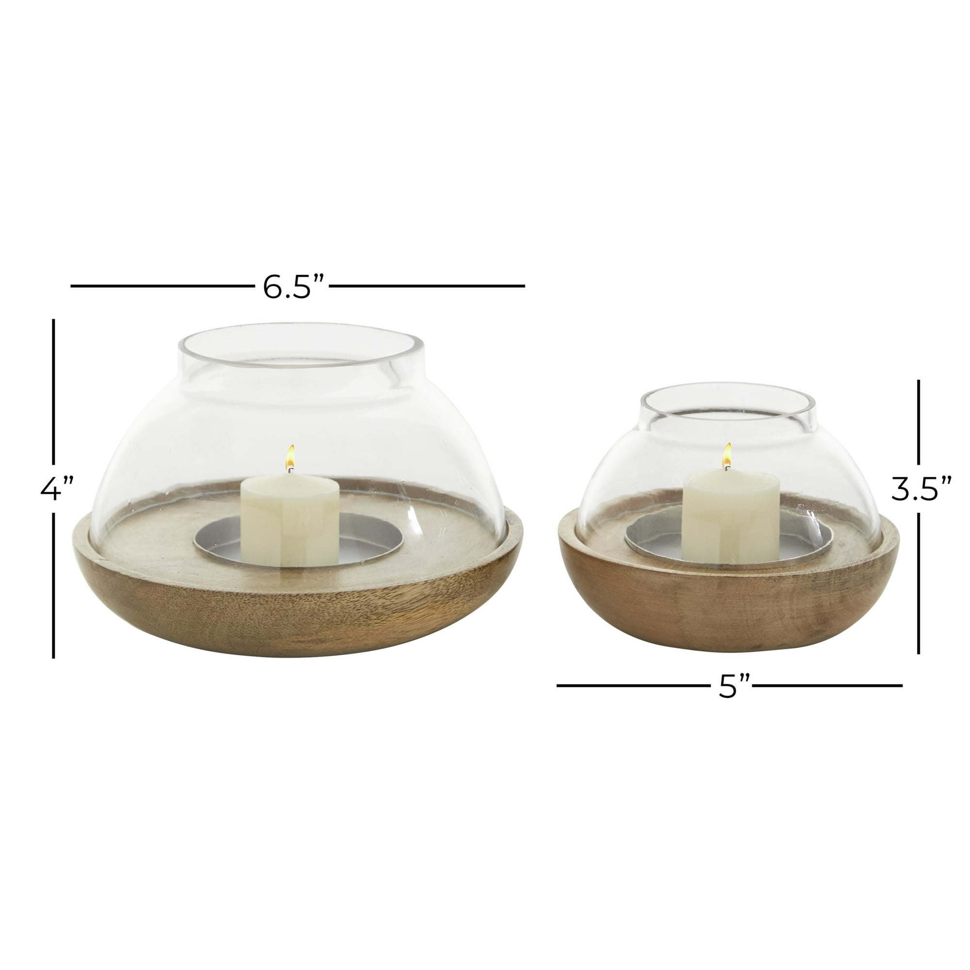 Each hurricane lamp measures 6.55L x 6.55W x 4.15H , 4.9L x 4.95W x 3.35H inches, and collectively weighs 1.76 lbs