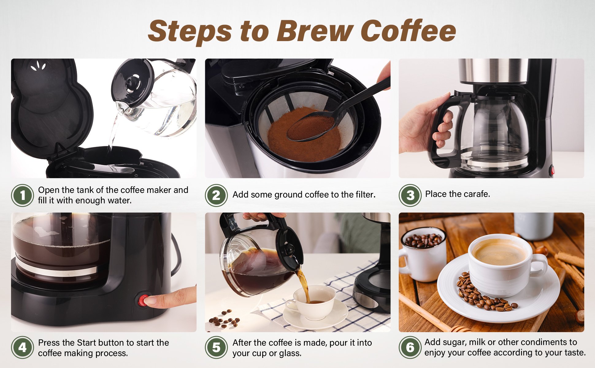 Keep warm function: This coffee pot is equipped with a metal carafe plate to keep the coffee warm after brewing, which helps preserve its taste and aroma for an extended period.