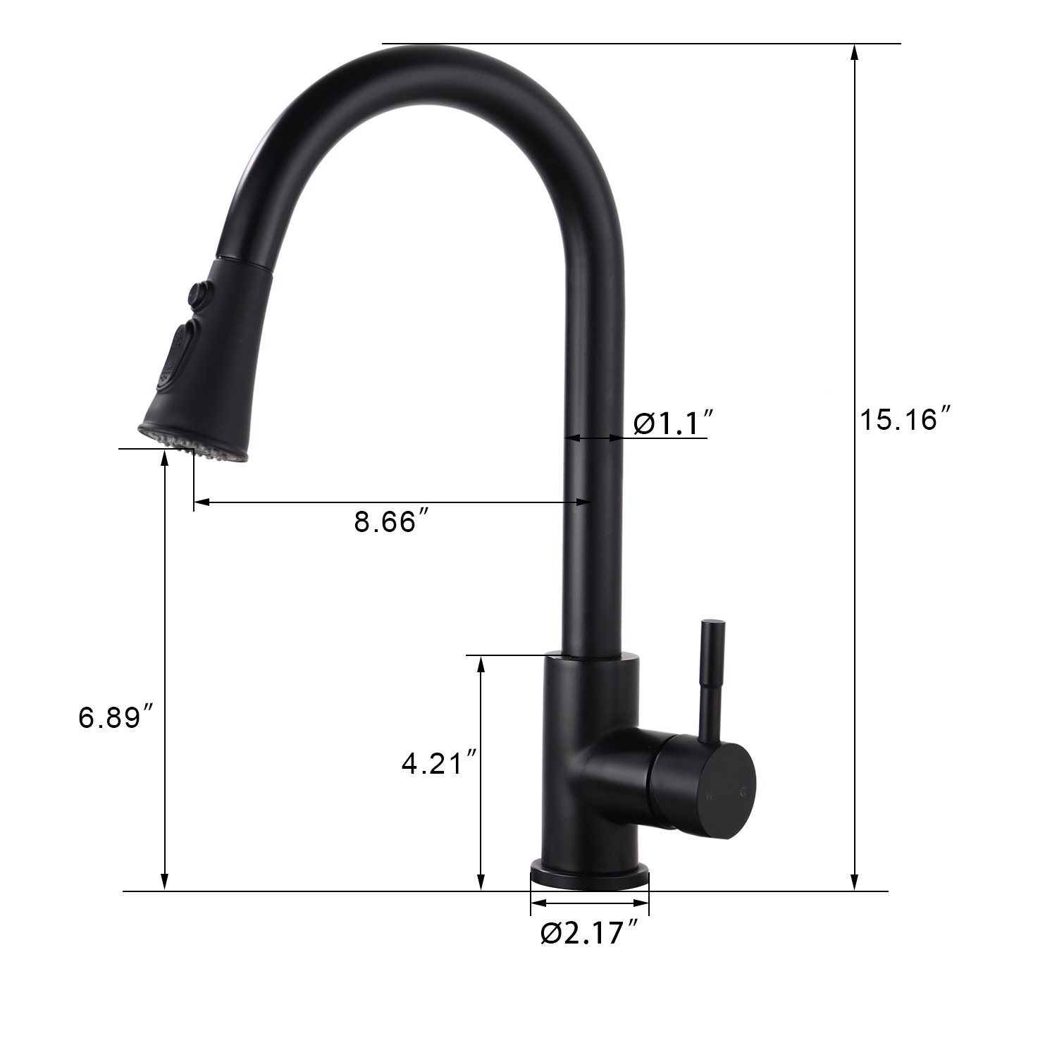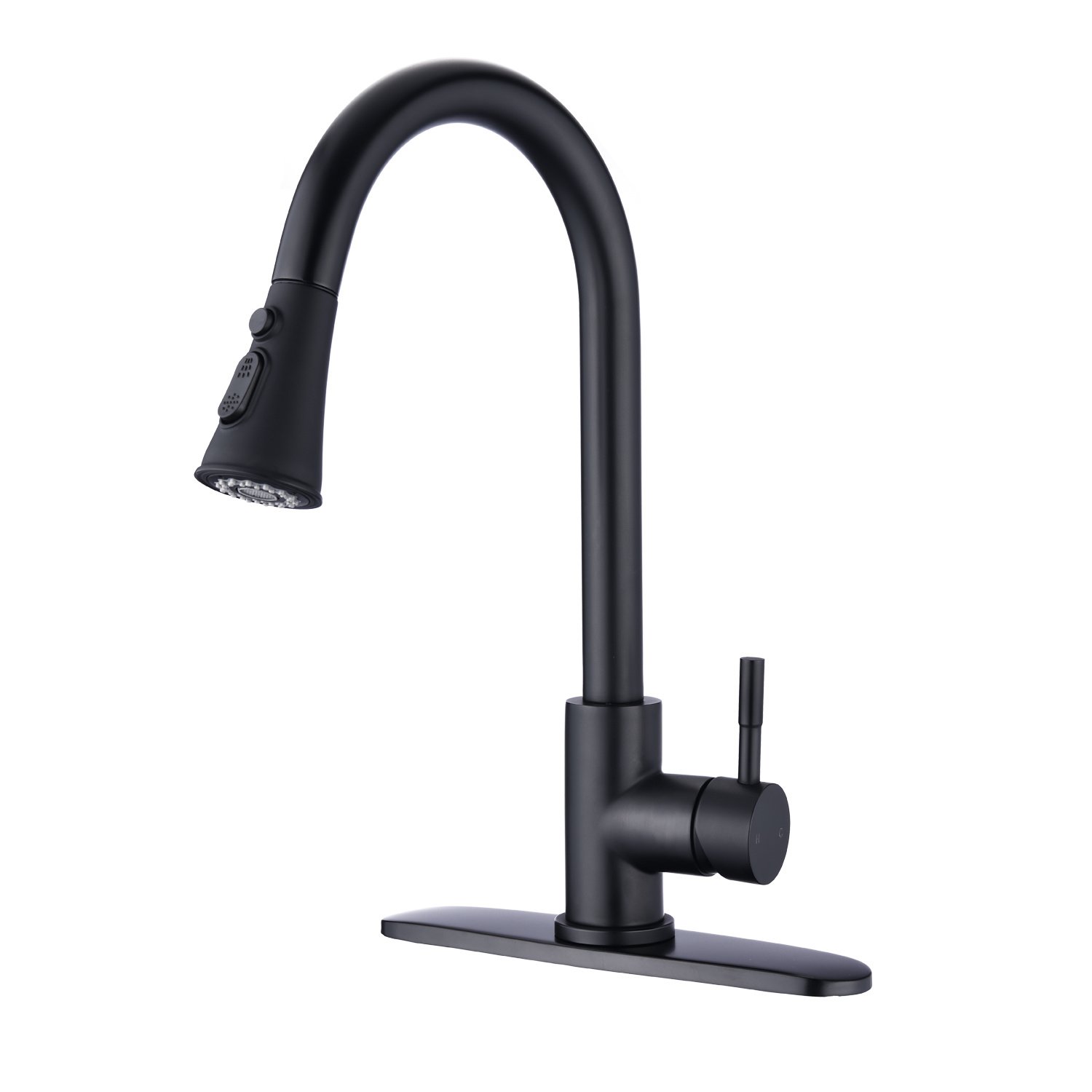 Description:Update your kitchen by adding this stylish yet durable matte black finished faucet with premium stainless steel construction for durability and longer life. This faucet features a 3 function pull down spray head for aerated flow or powerful spray or pause button.A smooth, high-arched curve makes the pull-down faucet sleek and modern in design.