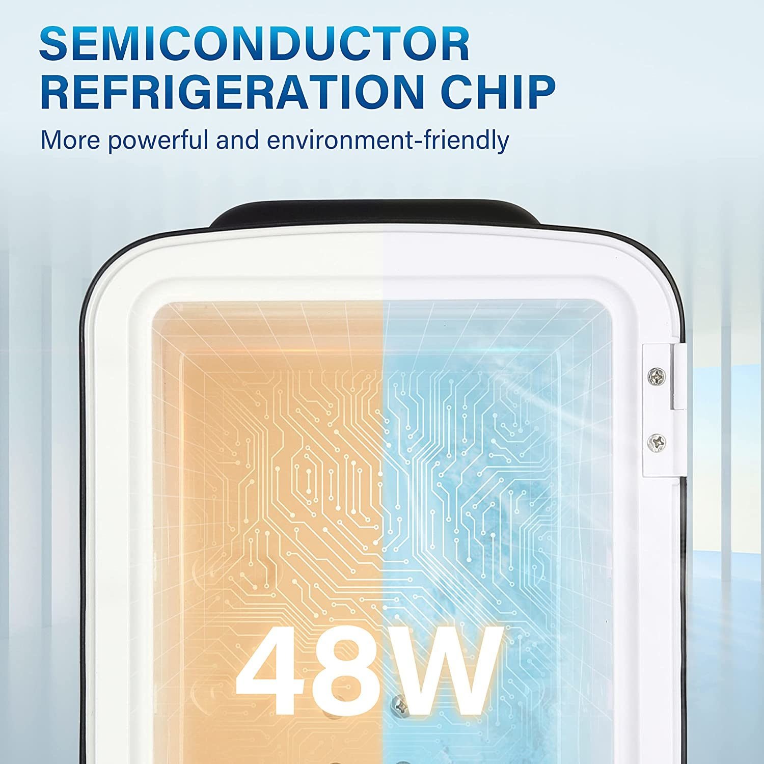 4.Eco-Friendly and Quiet: This mini fridge is 100% Freon-Free, using advanced semiconductors without CFCs and refrigerants. The powerful and energy-efficient chips ensure long-lasting durability. Additionally, it operates quietly, with a noise level as low as 25 dB in Sleep Mode.