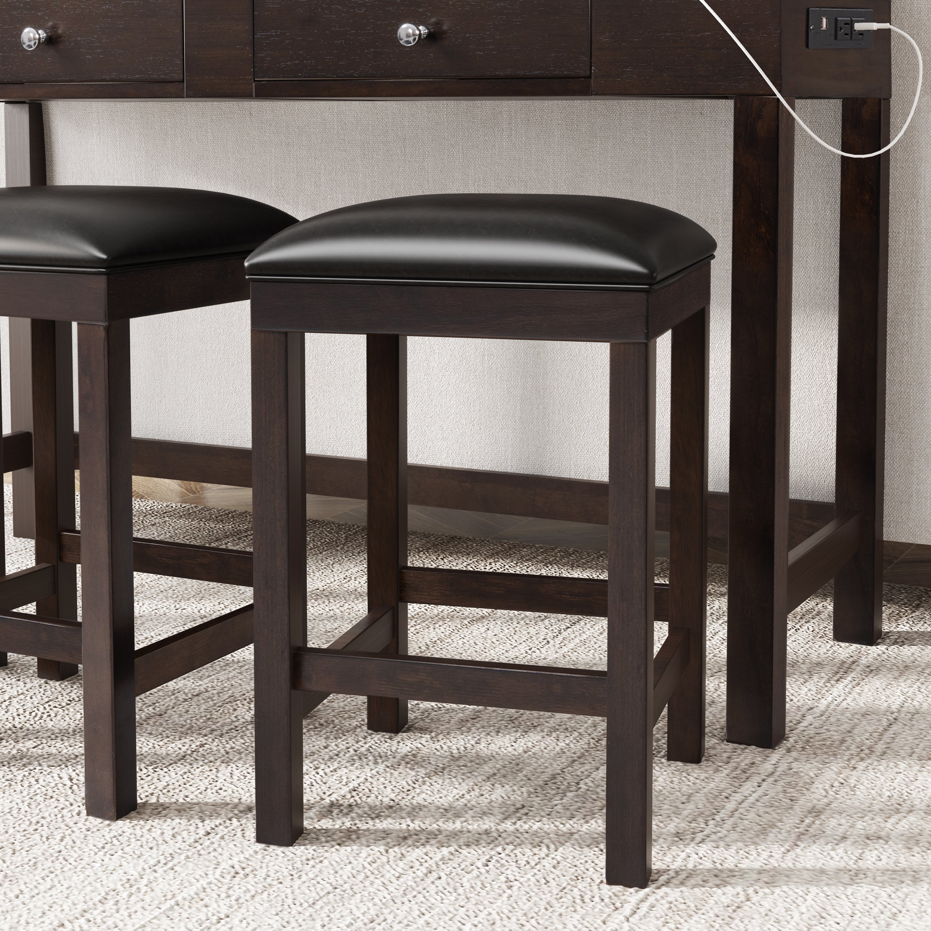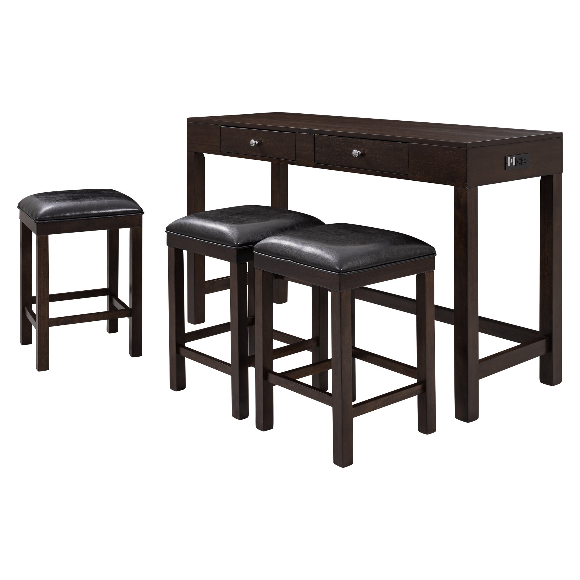TOPMAX 4-Piece Counter Height Table Set with Socket and Leather Padded Stools, Espresso