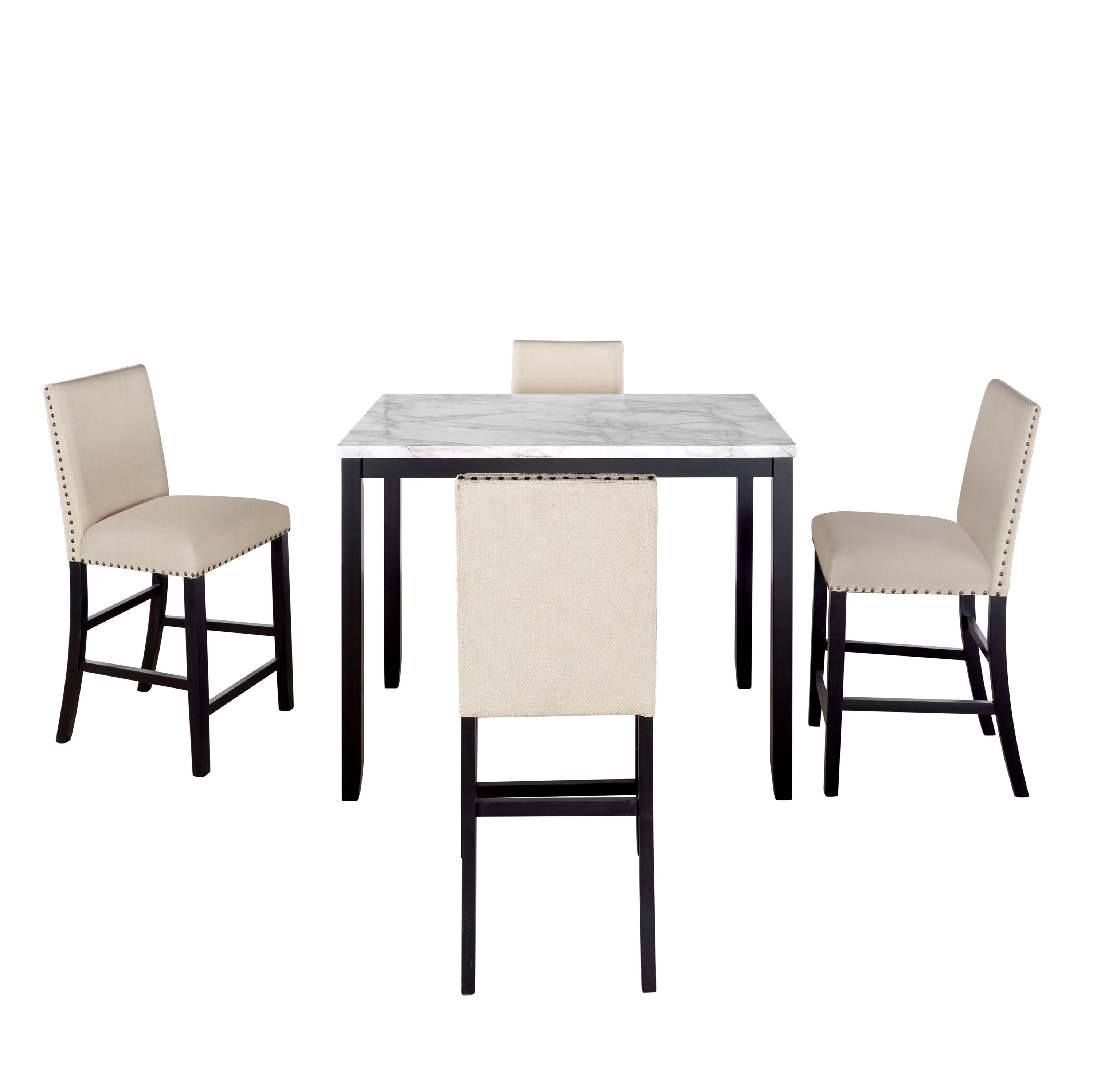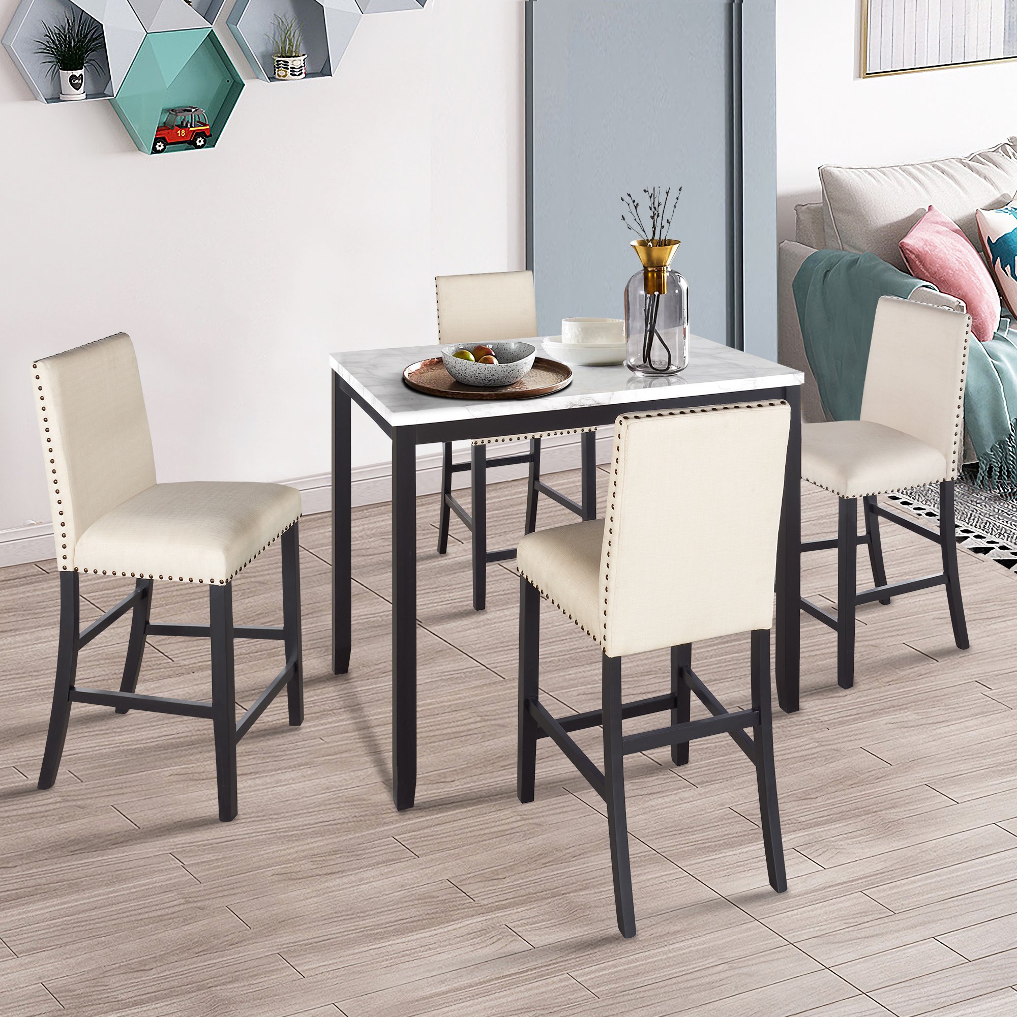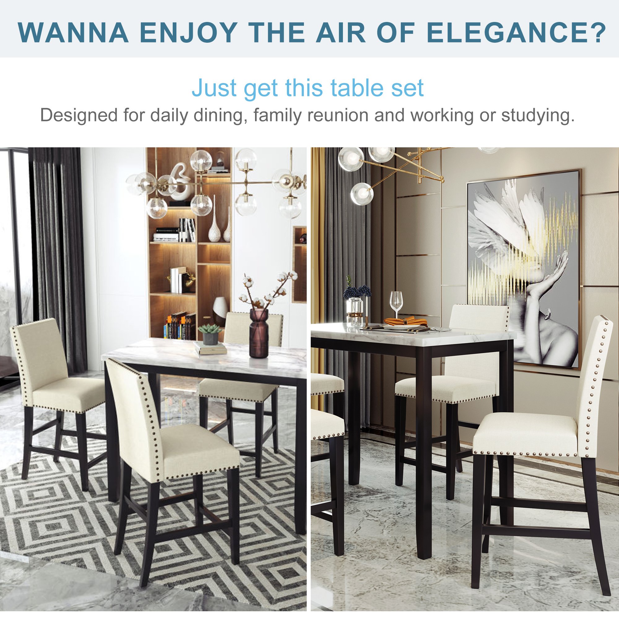 TOPMAX 5 Piece Counter Height Faux Marble Modern Dining Set with Matching Chairs and Marble Veneer for Home, Beige