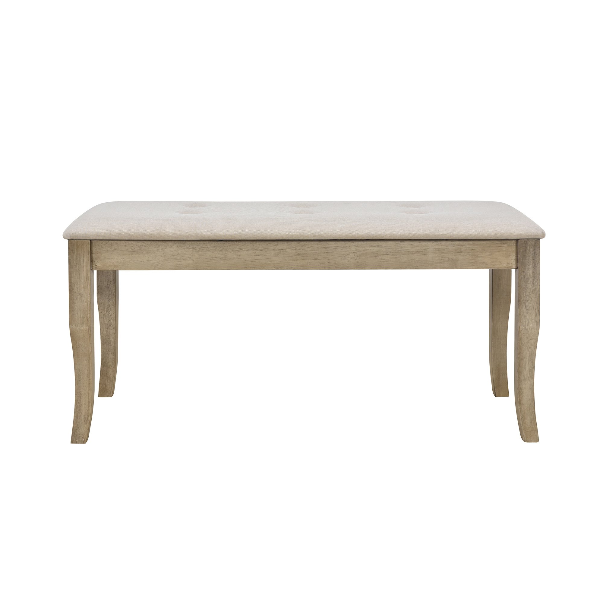 Rustic StyleThe tabletop is in a simple rectangular design, and its combination of rigidity and softness makes the artistic sense stronger. The natural wood grain of the tabletop of this dining table set complements a variety of unique interior styles by blending in seamlessly, especially in the color of natural wood wash. Its beautiful lines, modern nailhead decoration and delicate button tufting details are elegant and thoughtful in design, which reflect a variety of design aesthetics.Reliable QualityThe dining tabletop is made of MDF and Okoume wood veneer with a clear wood texture and smooth touch. As all other parts are crafted of tip-top quality solid rubber wood, needless to say, the dining set featuring excellent durability and stability will serve you for a lifetime. The table, chairs, and bench all have a load-bearing capacity of 250 LBS. Covered with thick sponges, the 4" thick linen chair cushions and 1.5" thick linen bench cushion can offer you a comfortable seating experience.